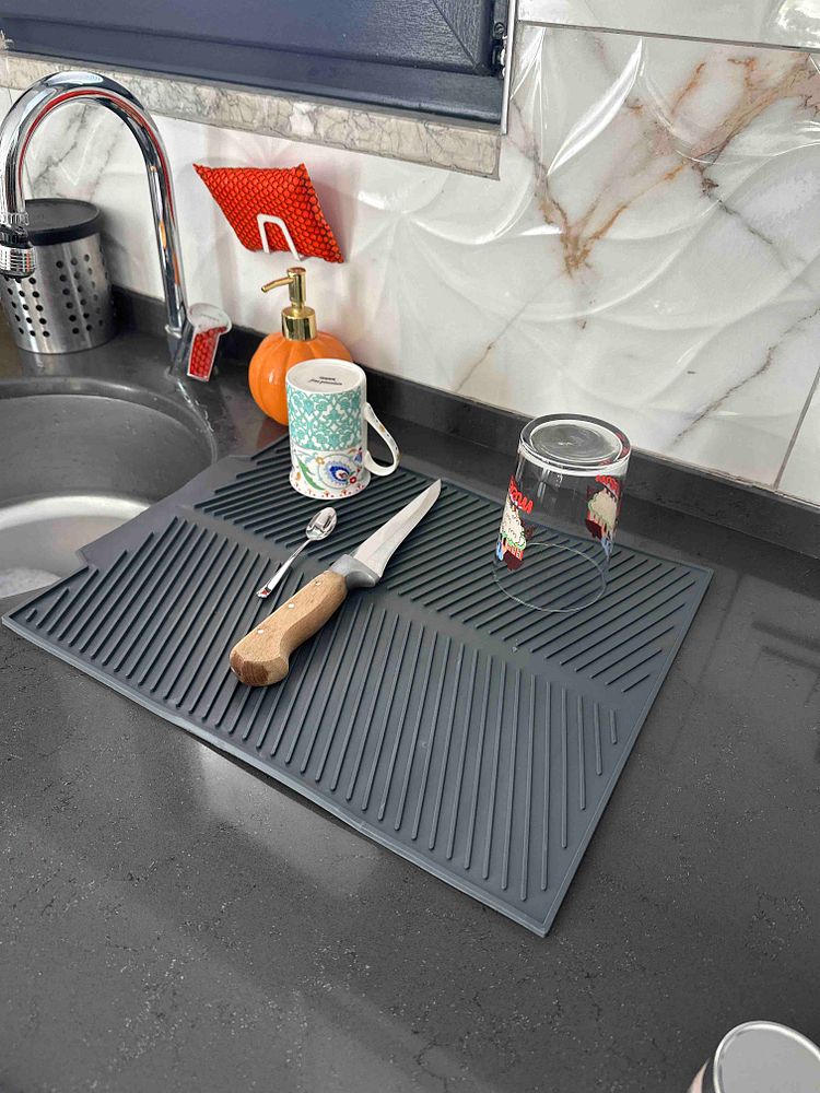 Silikon bulaşık kurutma matı ile mutfağınızda hijyen, düzen ve şıklığı bir arada yaşayın. Kaymaz yapısı sayesinde güvenli kullanım sunar, suyun birikmesini engeller ve kolayca temizlenir. Isıya dayanıklı yapısıyla tencere ve tavalar için altlık olarak da kullanılabilir.